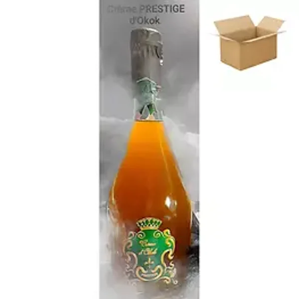 Produite en Région Champagne, cette Liqueur RARISSIME, ELEGANTE, SEDUCTRICE et EXCEPTIONNELLE à base de la plante d'OKOK (encore appelé FUMBWA ou GNETUM AFRICANUM), se démarque par son mélange pinot meunier, de chardonnay et d'Okok renforcés dans une fermentation particulièrement unique au Monde via une technique traditionnelle venant du Cameroun de façon originale et qui se marie à la Region Champagne de FRANCE, où sont terminées et embouteillées dans des silhoutes en verre de Champagne subtilement, ce délicieux trésor des Pharaons. Une boisson prestigieuse qui porte l'Afrique et s'inspire d'elle à 80% et qui, via l'ingéniosité et l'audace de sa création, se consacre comme L'UNE DES UNIQUES & RARISSIMES LIQUEURS PRESTIGE CHAMPENOISE AU MONDE ayant un caractère et une histoire qui mérite plus d'un détour au vu de son allure crèmeux, de sa couleur subtilement dorée caramelisée, son côté noble séducteur et de son aspect gustatif sublimement sauvage avec un nez fin fruité, qui rappelle son goût des noix sauvages rares d'afrique et son palais "maturisé et parfumé" aux nectar de palmes ...